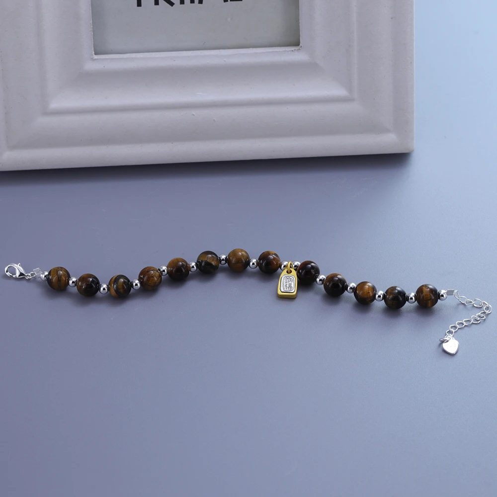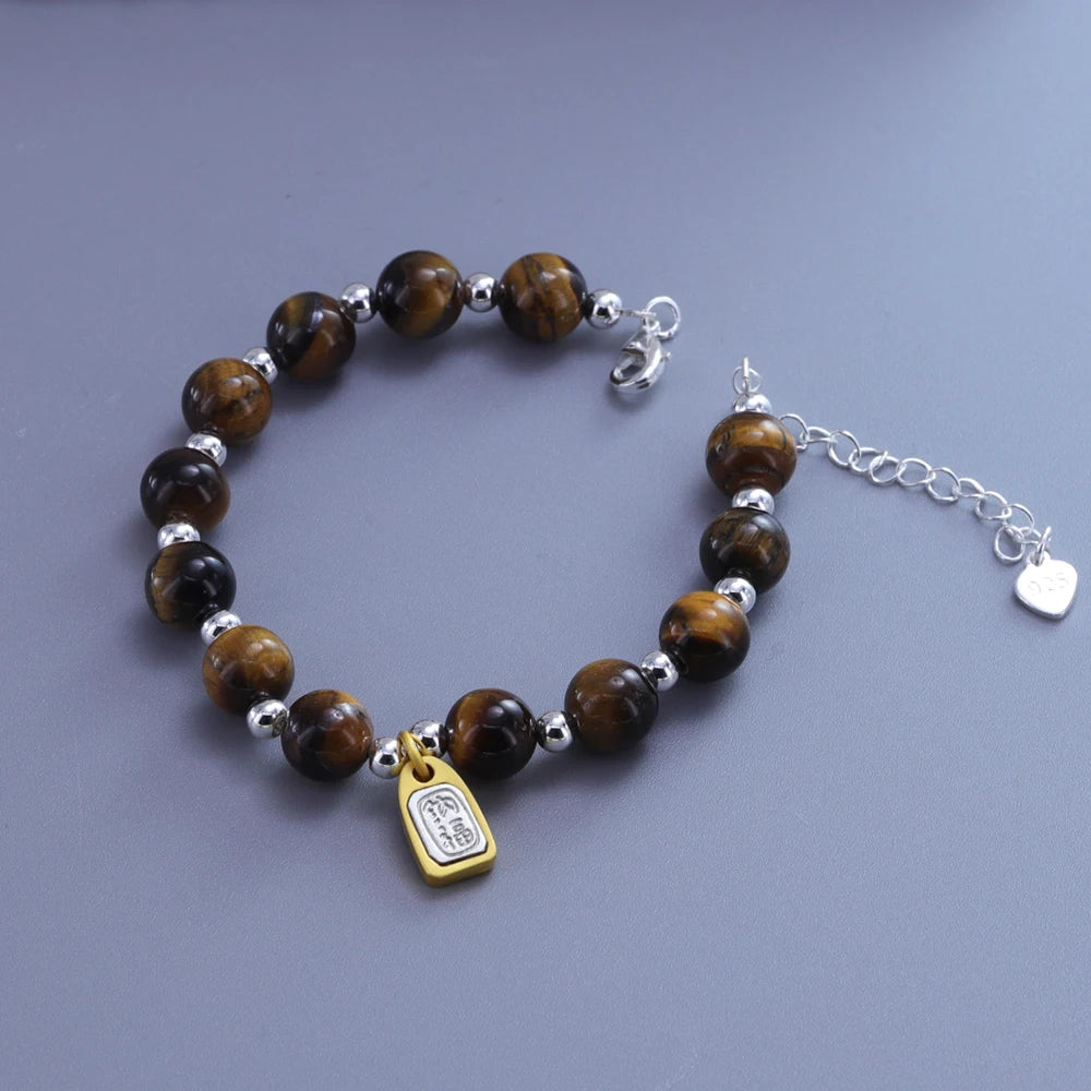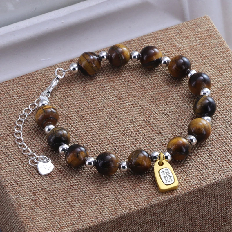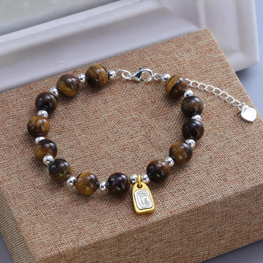 925 Sterling Silver Natural Tiger's Eye Bracelet For Women Gift 14K Gold Plated Wealth And Fortune Pendant Jewelry