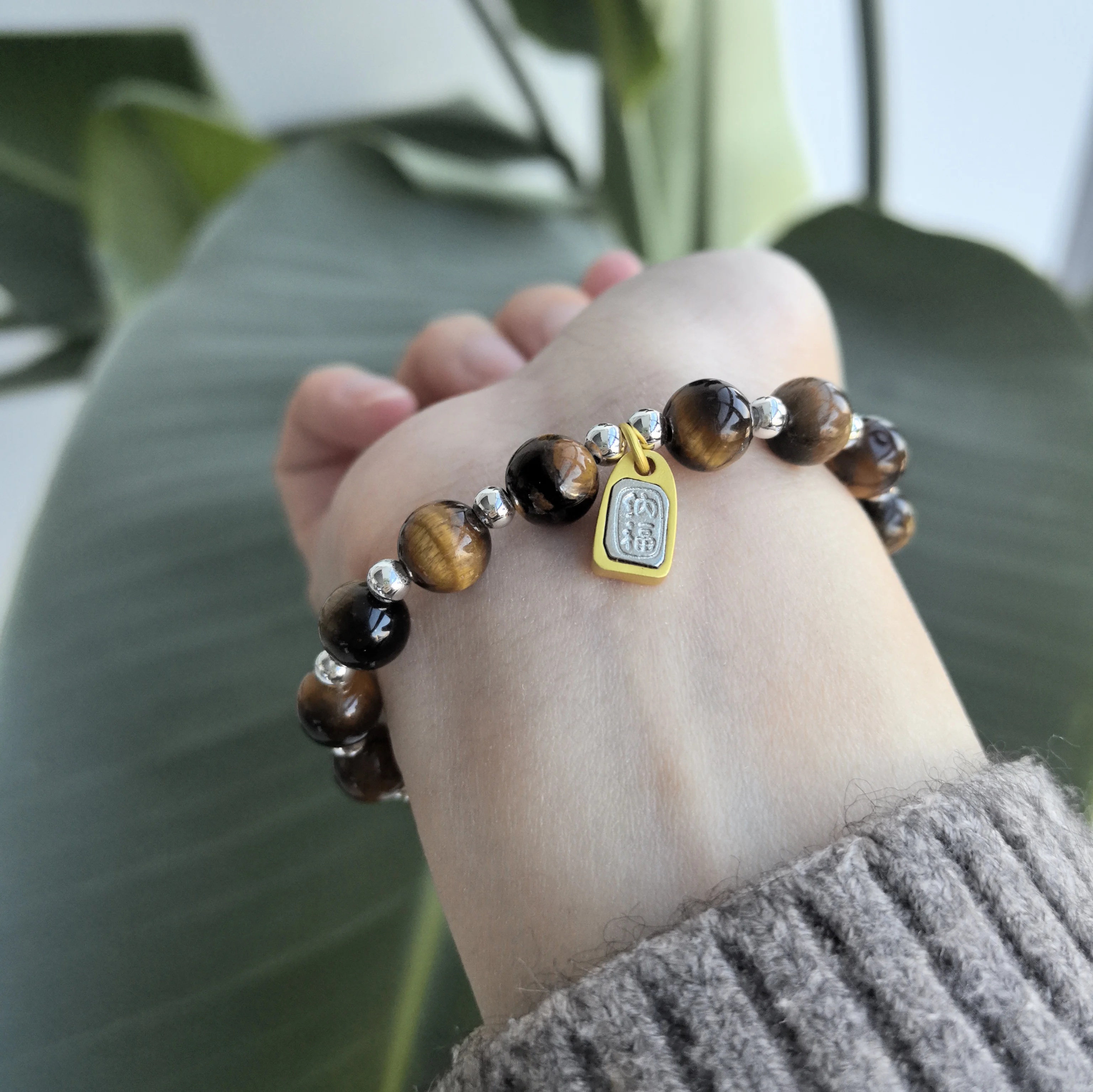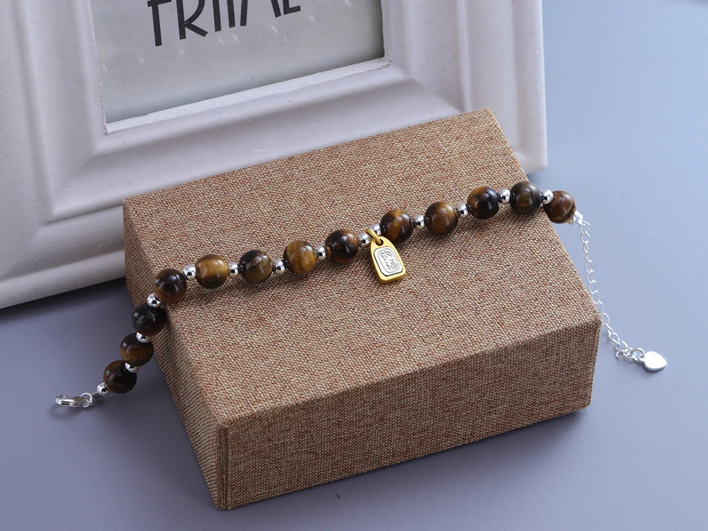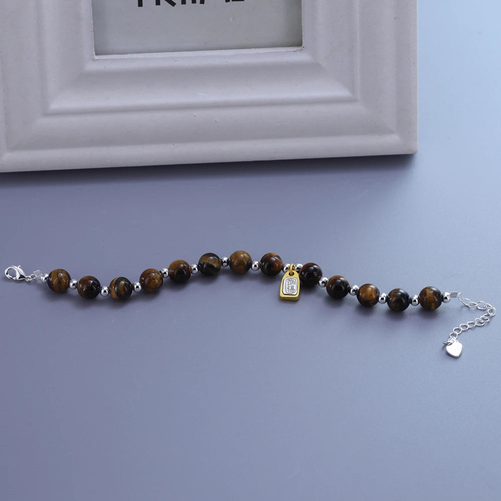 925 Sterling Silver Natural Tiger's Eye Bracelet For Women Gift 14K Gold Plated Wealth And Fortune Pendant Jewelry