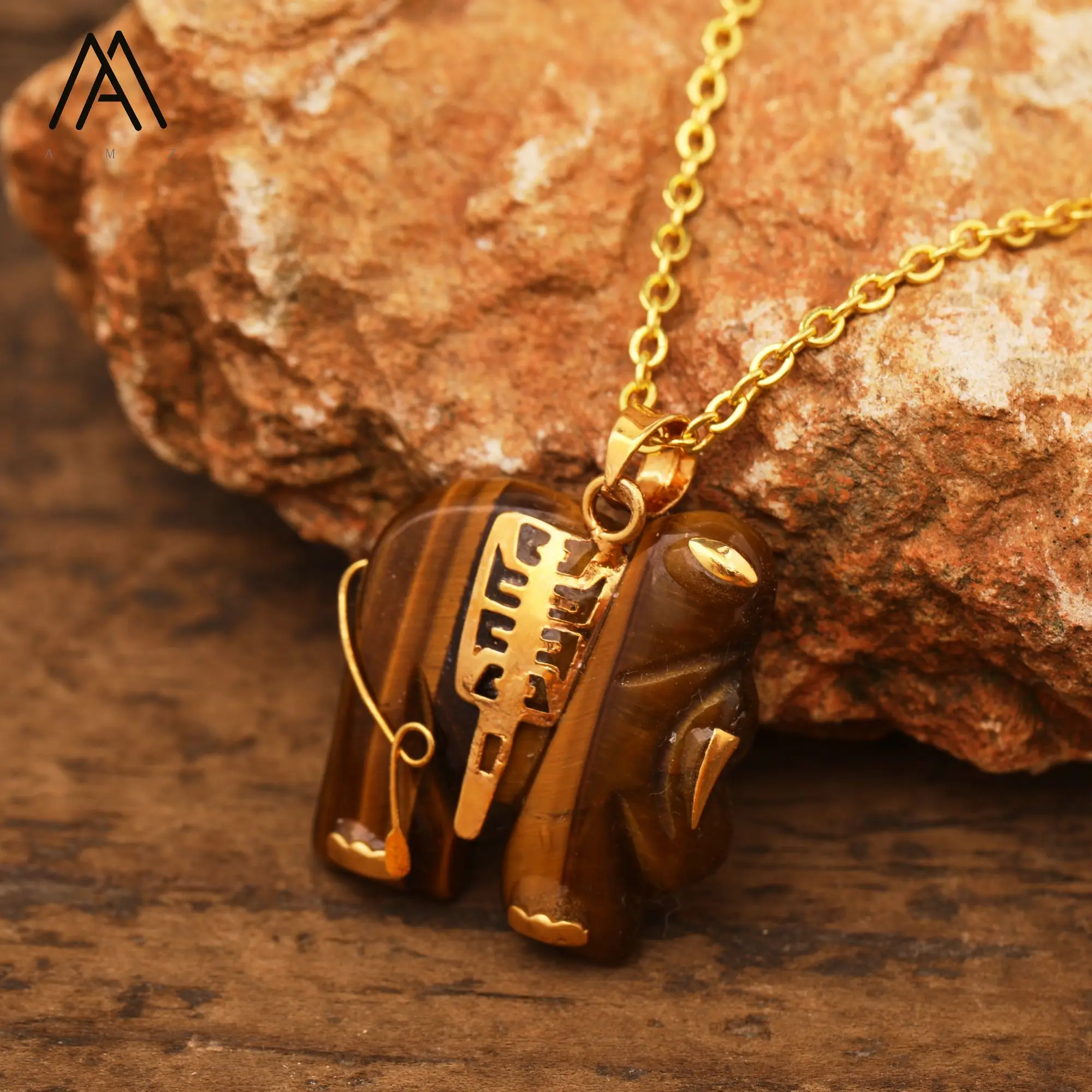 Product Type: Gold Elephant Buddha Jewelry Tiger's Eye Carving Crystal Necklace Pendant Choker Fashion Gifts