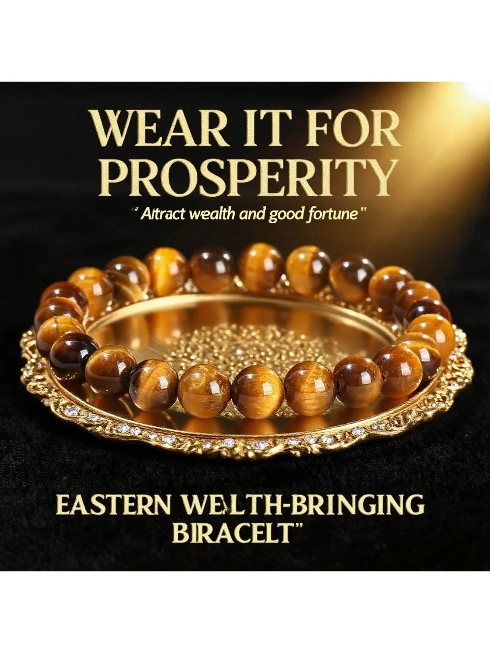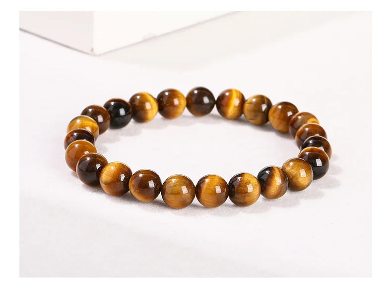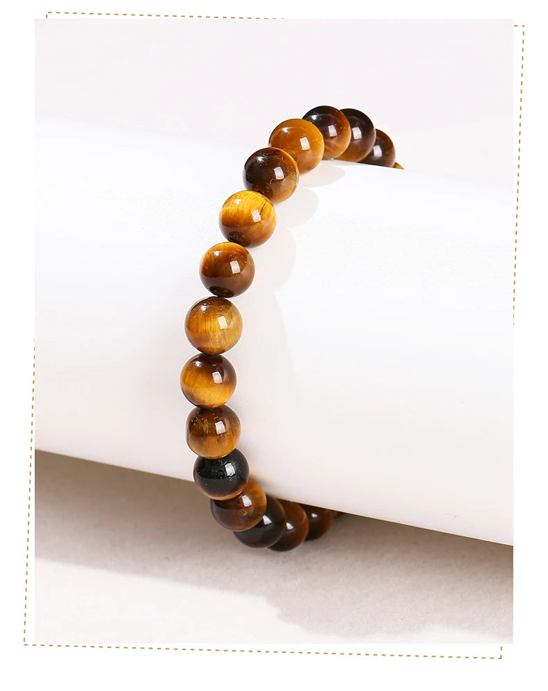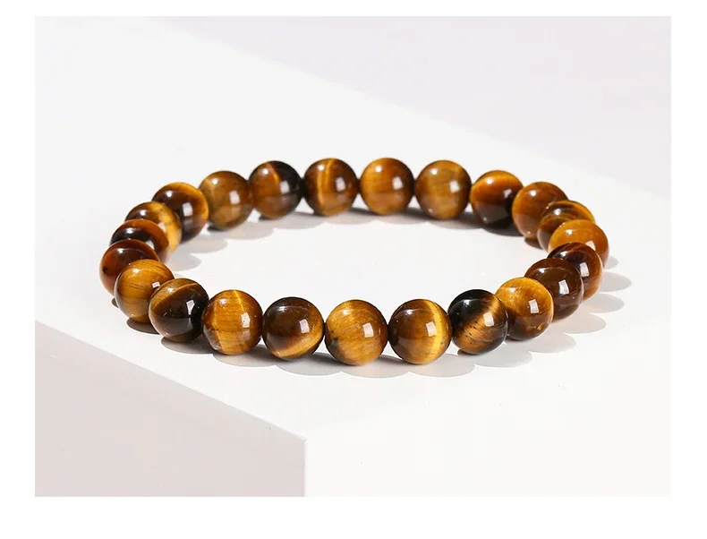 With its glowing golden-yellow hue and tiger-like pattern (a symbol of luck in Eastern traditions), each bead is polished to highlight its timeless shine, fitting daily wear or special moments.